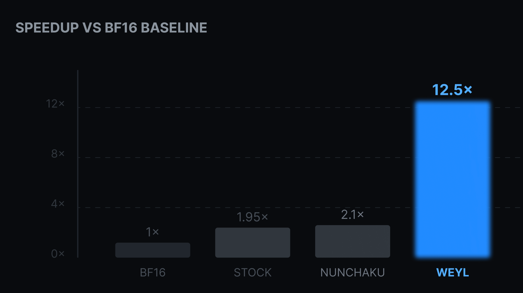 Today we're excited to announce the Weyl AI content generation API, and opening up early access to the v0 API for those interested in testing it. After months of building quietly, we're ready to start sharing what we've been working on: a no compromise approach to diffusion inference leveraging NVFP4 that delivers economically transformative efficiency for AI content generation. This blog will walk through the v0 API capabilities, our technical approach and roadmap that makes it possible, and how you can get early access.