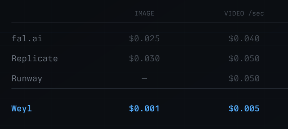 Initial pricing for the Gen AI API will start at $0.001 per 480p image, and $0.005 per second of 480p video, with additional options for higher resolution, video length, and service tiers (ex. fast lane). Our goal is to always remain the most affordable provider with no sacrifices. This isn't VC-subsidized pricing, these are actual sustainable prices because our actual generation costs are that low.